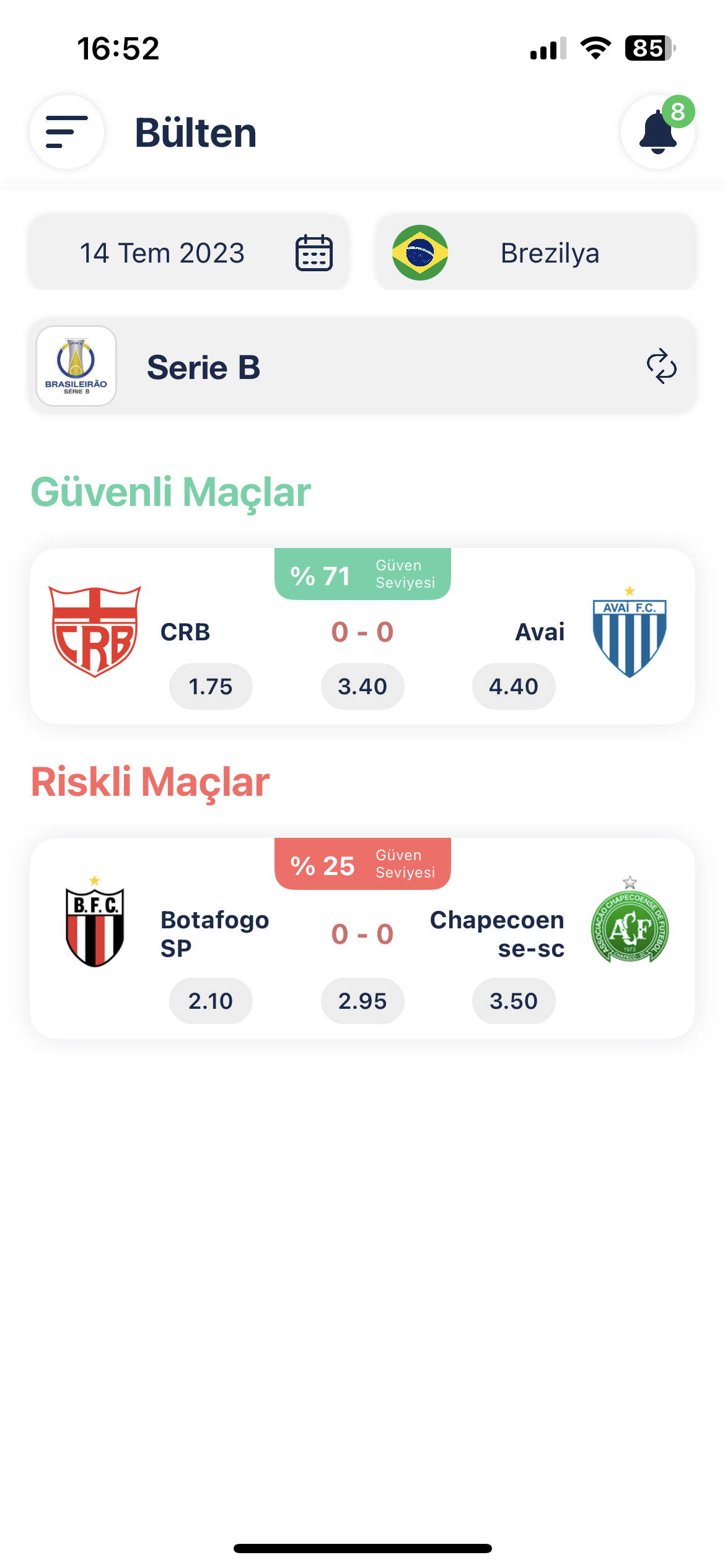 In the daily bulletin, Matches provide you with odds according to Risk Group in Safe-Medium and Risk Group. By looking at the bulletin analysis, you can choose what match you want. Knowing how much risk you're taking and how confident you are for which match will help you set a roadmap for prediction.